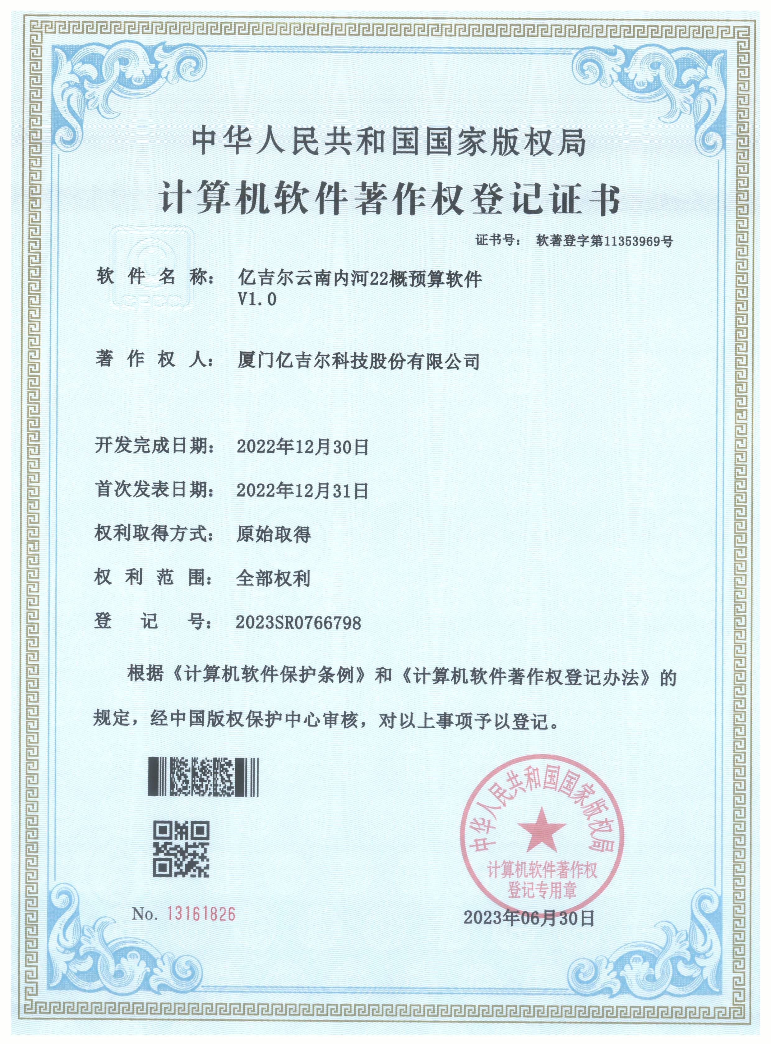 億吉爾云南內(nèi)河22概預(yù)算軟件登記證書(shū) 發(fā)布日期:2023年11月22日 瀏覽次數(shù):2164 關(guān)鍵字: 公司 1/1億吉爾云南內(nèi)河22概預(yù)算軟件登記證書(shū)(2023R11L0546651)
